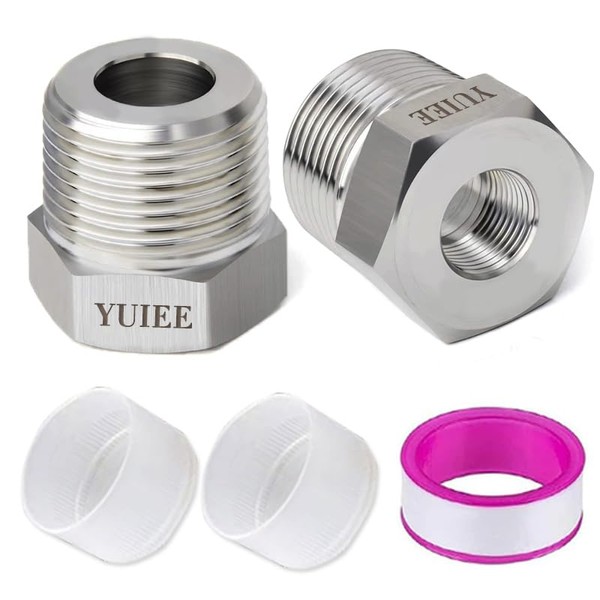 YUIEE 304 Stainless Steel Bushing,1/2" Male NPT to 1/4" Female NPT Reducer Pipe Fitting,Reducer Hex Bushing Hex Head Bushing 2 Pcs Bushing Reducer Pipe Fitting with Protective Case and Teflon Tape