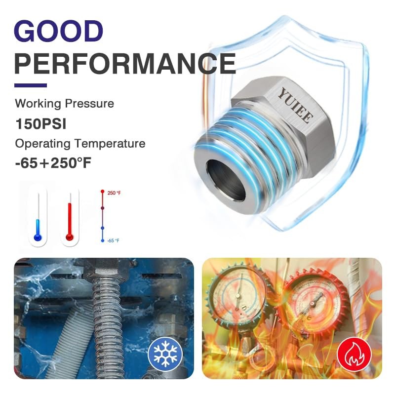 - 【Working Temperature&Pressure】:Reducer hex bushing temperature range from -65°F to +250°F (-53°C to +121°C) Maximum working pressure of 150 psi