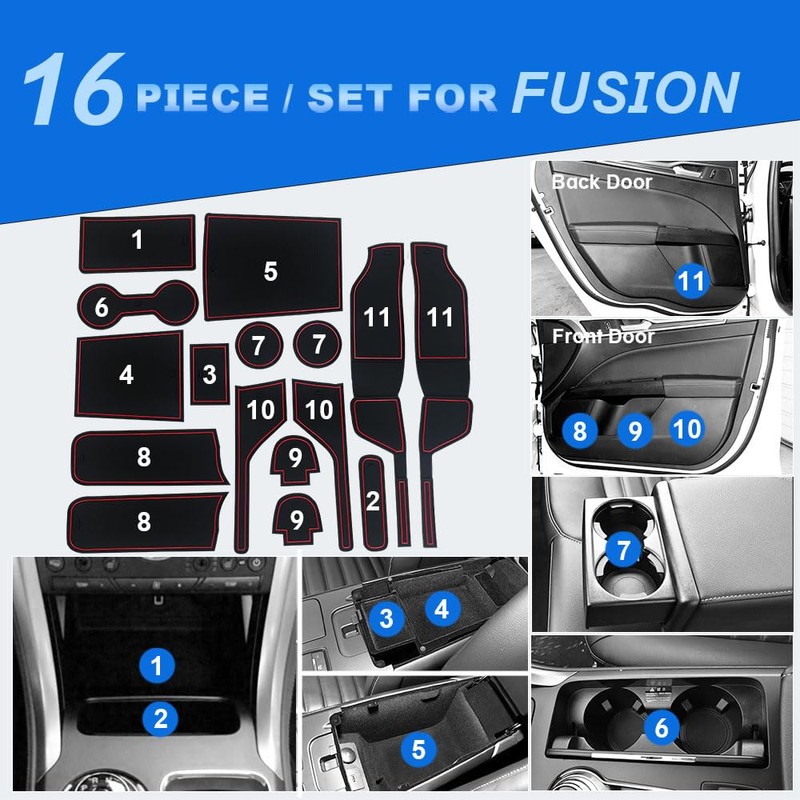 YUJIANQ Cup Holder Inserts Line for 2017 Ford Fusion Accessories Non-Slip Door Pocket Mats Compatible with Ford Fusion 2018 2019 2020 Accessories Center Console Liners 16PCS/Set (Black)
