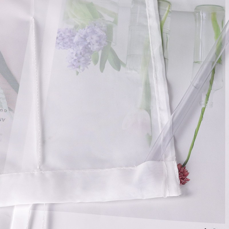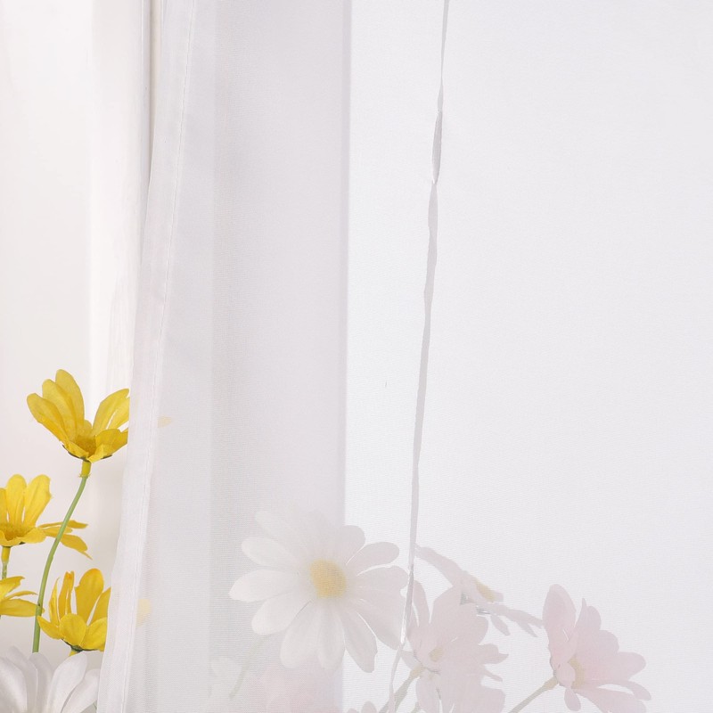 Transparent Roman blind, voile fabric with pretty print, incl. accessories, with metal hooks for hanging and triangular eyelets for easy installation on the window, without drilling, suitable for window sash thickness between 13 mm and 19 mm.