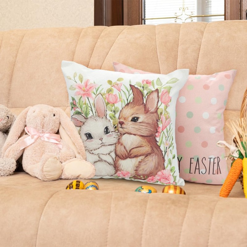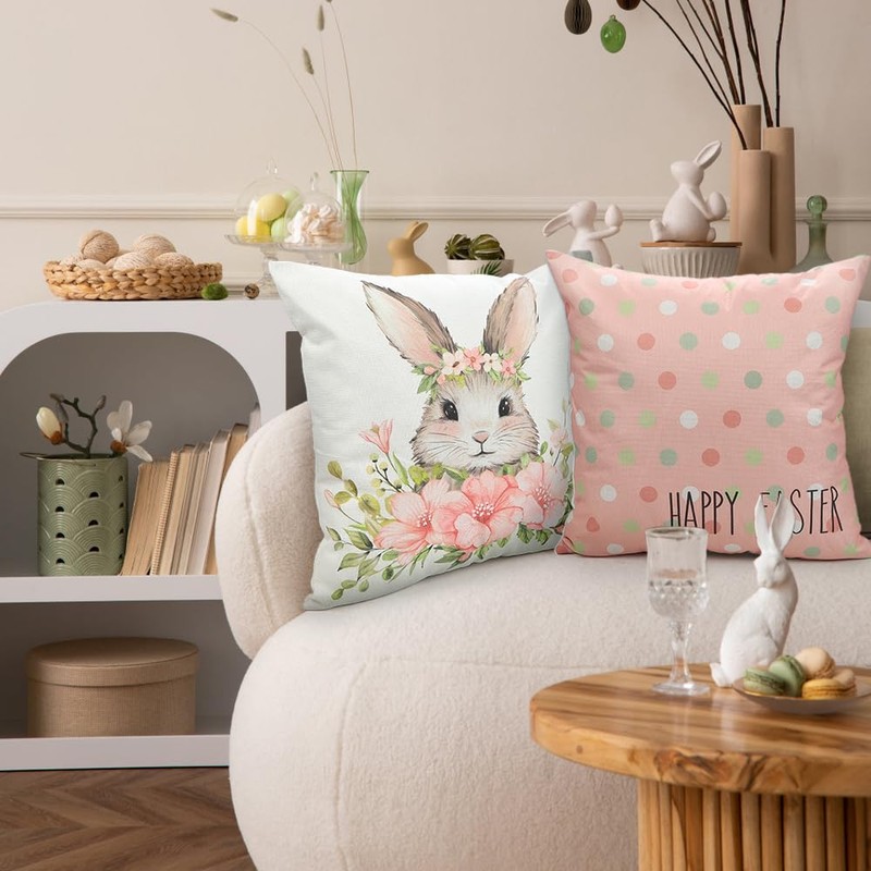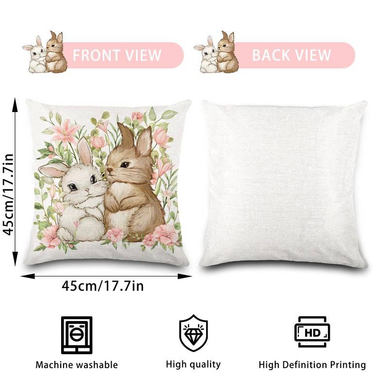 - SPRING&EASTER DECOR :The rabbit cushion case it is the perfect ornament for Easter.Suitable for living room, bed ,bedroom, sofa, couch, car, seat, floor, bench, office, cafe, party ect indoors and outdoors.Easter pillow covers decoration helps you creating happy holiday atmosphere and get a lot of compliments.