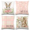 YUJUN YUJUN 4 Pack Easter Spring Pillow Covers, 18x18in Buffalo Plaid Farmhouse Rabbit Bunny Flower Easter Throw Pillows, Couch Decor