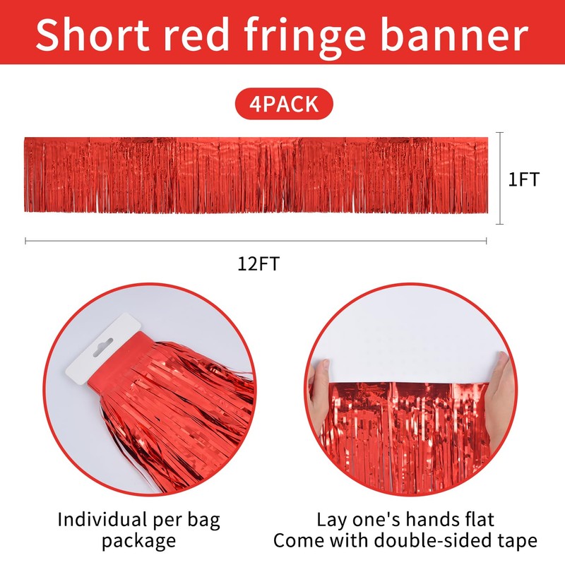 - 🌈DIY🌈: Cut the red party decorations to width and hanging them in different locations for a fuller effect. Alternatively, verlap two fringe garland to achieve unexpected visual effects!