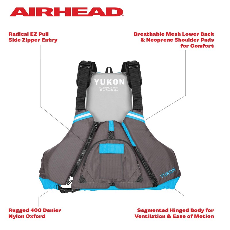 Yukon Charlie's Sport Paddle Life Vest, Carbon/Light Blue, Large/XL (VM-002R)