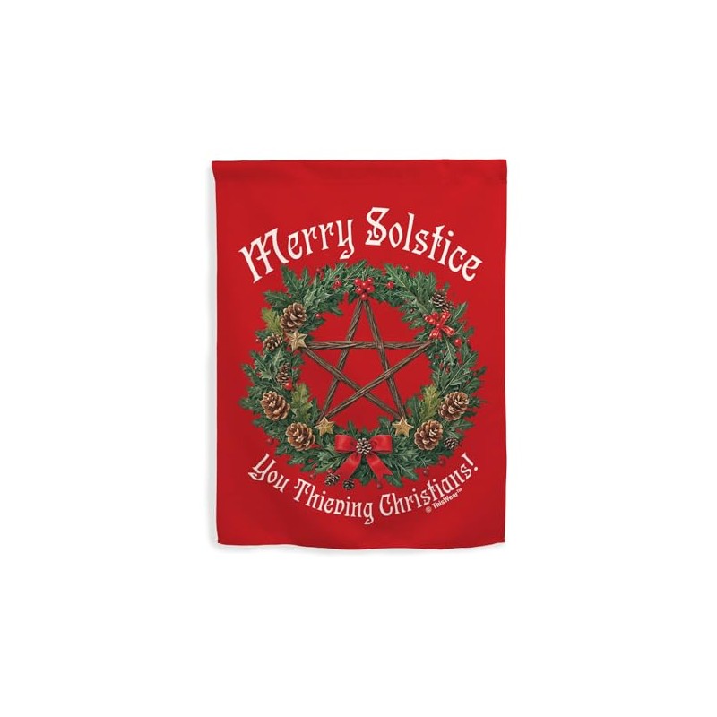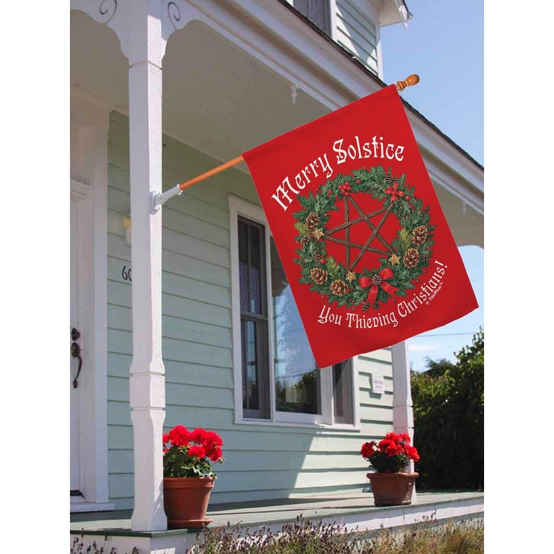 Yule House Flag Merry Solstice you Thieving Christians Vertical House Flag