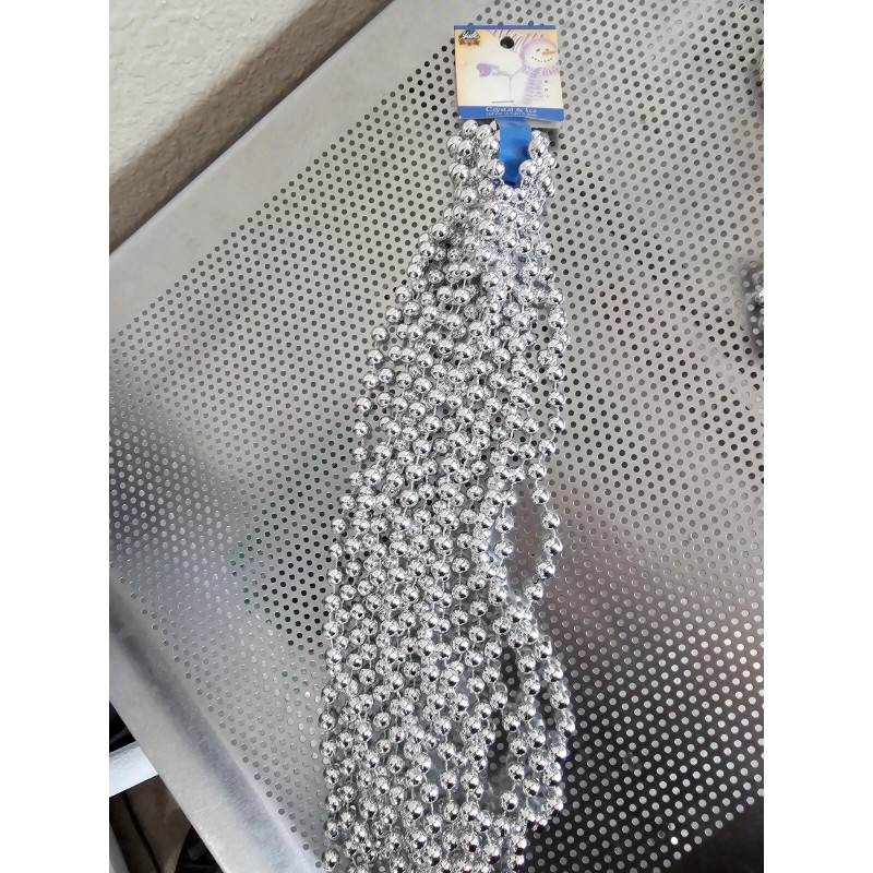 Elevate your Christmas decor with these stunning Yule Rite Crystal And Ice Silver String Beads. Measuring 18 feet, these beaded decorations are perfect for adding a touch of sparkle to your Christmas tree, wreath, or any other festive