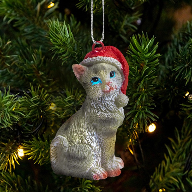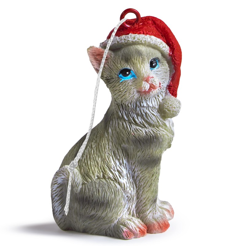 Yuletide Designs Cat Figurine Christmas Ornaments (Gray Tabby)