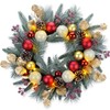 YULETIME 20-inch Christmas Wreath, Battery Operated Holiday Wreath with 20 Fairy Lights, Red & Gold Baubles, Frosty Red Berries, Pine Cones, Golden Leaves, Frosted Spruce Branches & Pine Needles (Red)