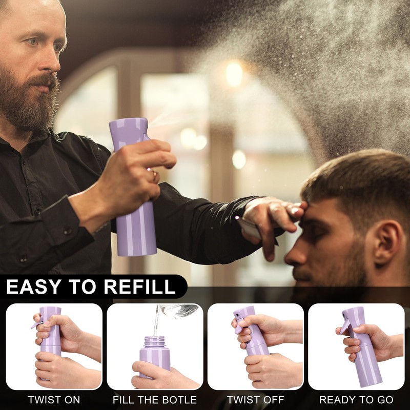 YULING-X hair spray bottle, ultra-fine spray continuous spray bottle (200ml/6.8oz), used for hair design, vegetation, cleaning and skin care - empty, reusable (Pure Purple)