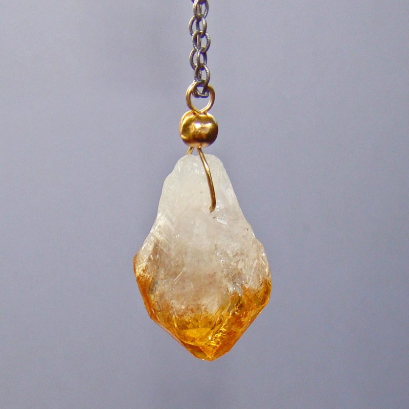 Naturally rough nugget of raw organic Citrine slides freely on an oxidized textured sterling silver chain.