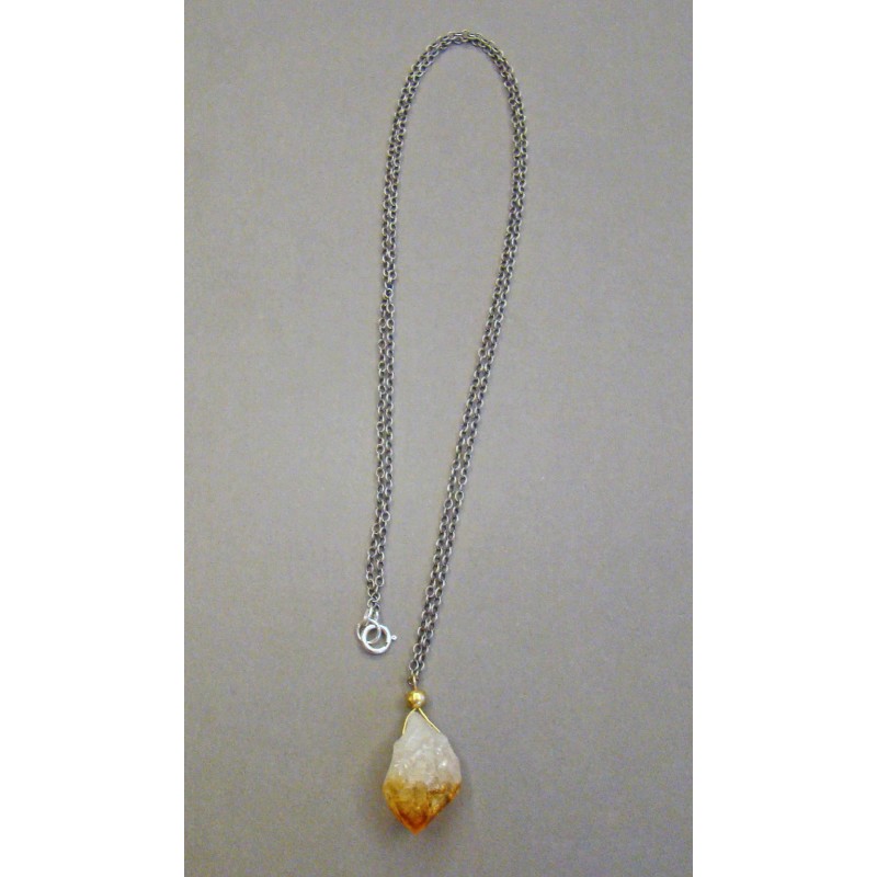Yuliya Designs U&C Sundance 925 Oxidized Sterling Silver Chain Gold Raw Citrine Nugget Necklace