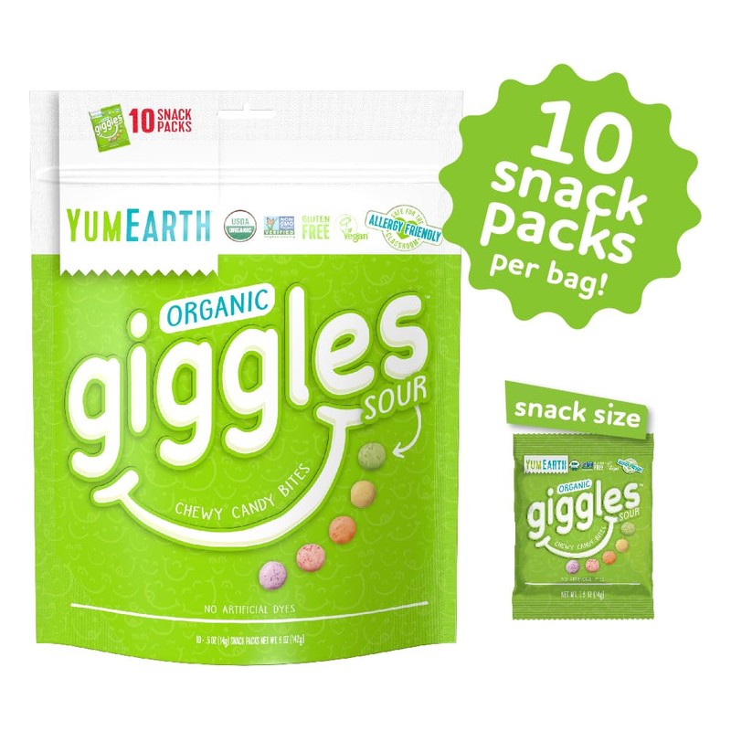 YumEarth YumEarth Organic Sour Giggles Chewy Candy - Allergy Friendly (Top 9 Free), No Artificial Dyes or Flavors, Non GMO, Gluten Free, Vegan - Individually Wrapped Sour Snack Packs - 0.5 Ounce (Pack of 10)