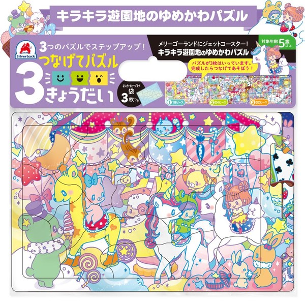 (Yumekawa Puzzles in Sparkling Amusement Park, Rollercoaster for Carry-go-rounds! Step up with 3 Puzzles! Connecting Puzzles 3 Siblings) Silver Bag for Educational Toys, Kindergarten, Elementary