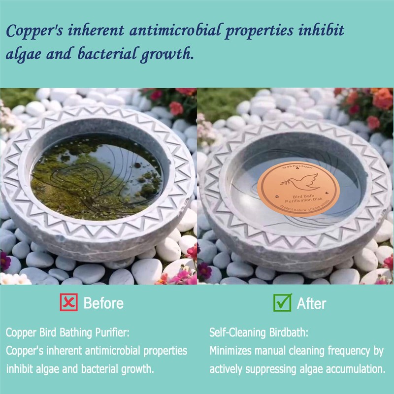 - Copper Bird Bathing Purifier: Self-cleaning birdbath system, maintaining cleaner water for extended periods with reduced maintenance.