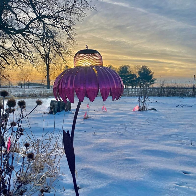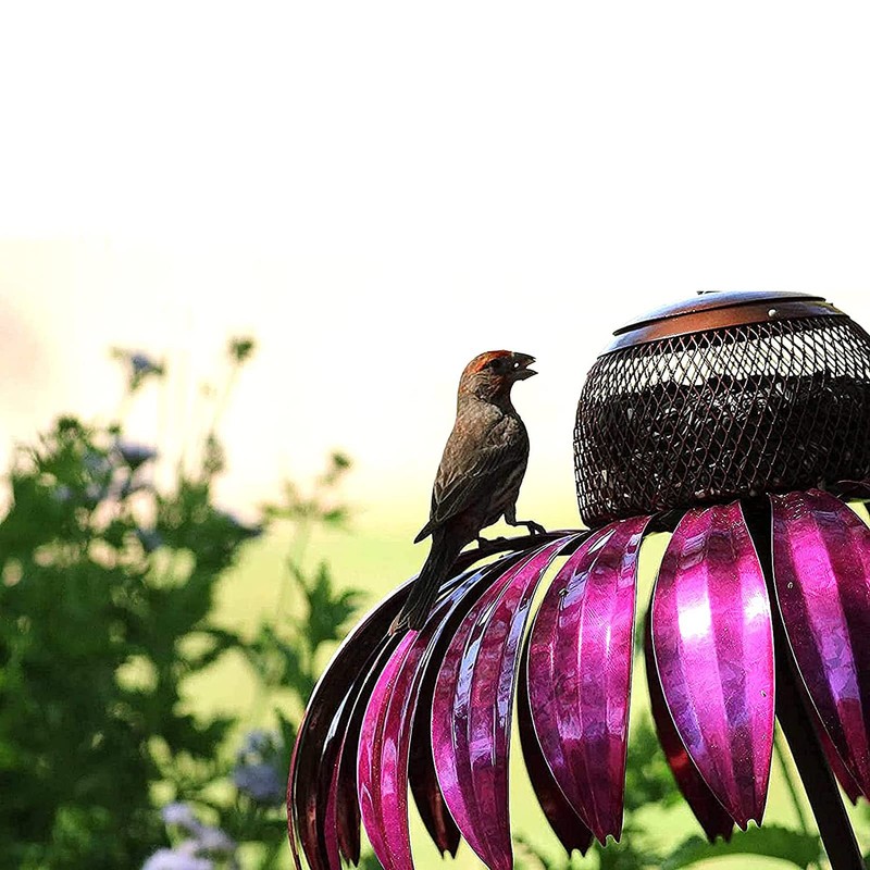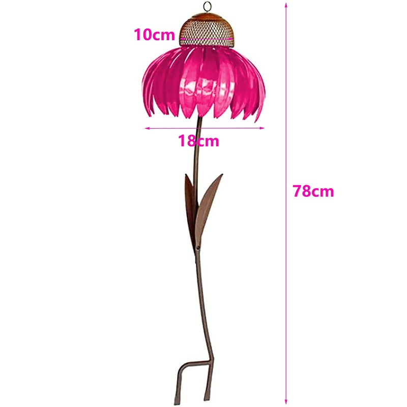 1. DECORATIVE AND FUNCTIONAL This kind of ornamental (beautiful colors and special shapes) and functional (bird attractive) bird feeders will make your manicured lawns and patios more attractive. This cone-shaped, flower-shaped bird feeder is made of metal. Thanks to the good malleability of the metal, the owner can easily remove it and insert it into the lawn without damaging it.