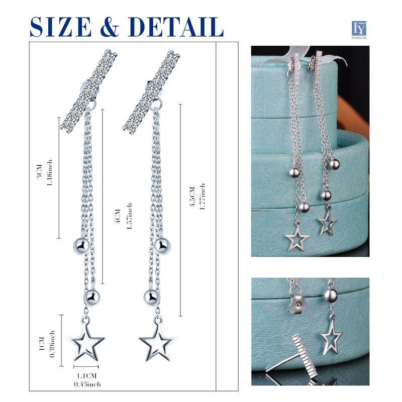 - Star size: 1.1 x 1 cm, earring length: 5.5 cm, weight: 1.4 g