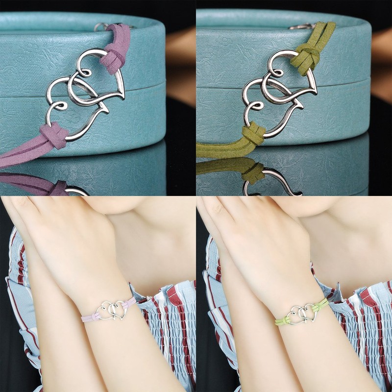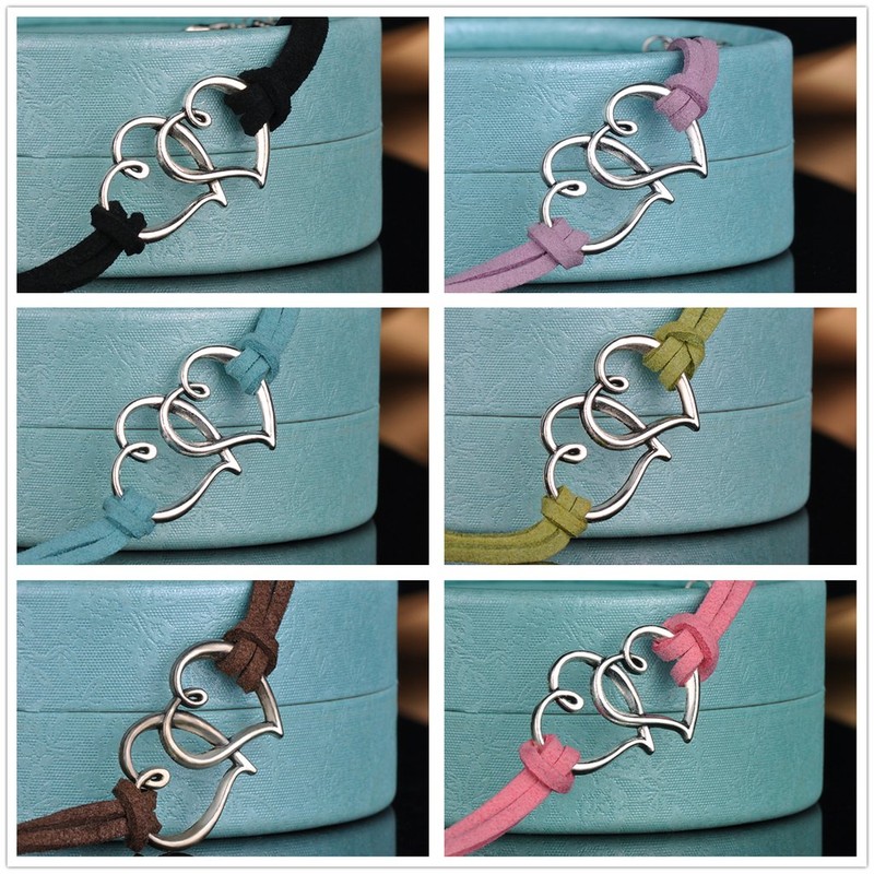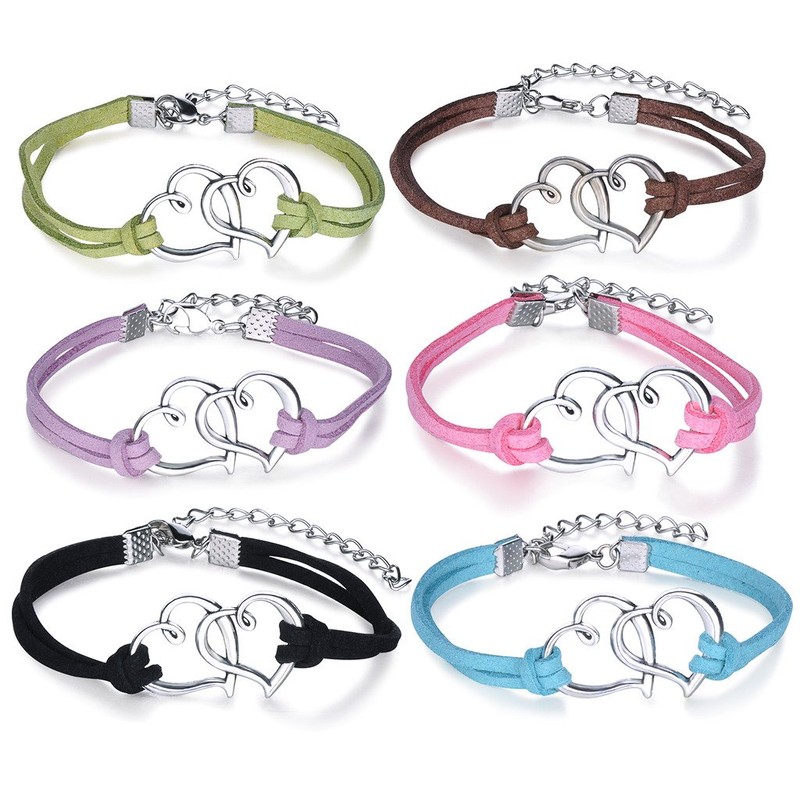 Yumilok Doppel Herzen Charm-Armband Freundschaft Armbänder Handgemacht Geflochten Leder Legierung Verstellbar Armkettchen für Damen Mädchen, 6 Stücke