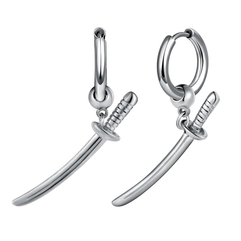 Yumilok Stainless Steel Hoop Earrings for Men Women Earrings Men's Silver Sword Dagger Earrings Earrings, stainless steel
