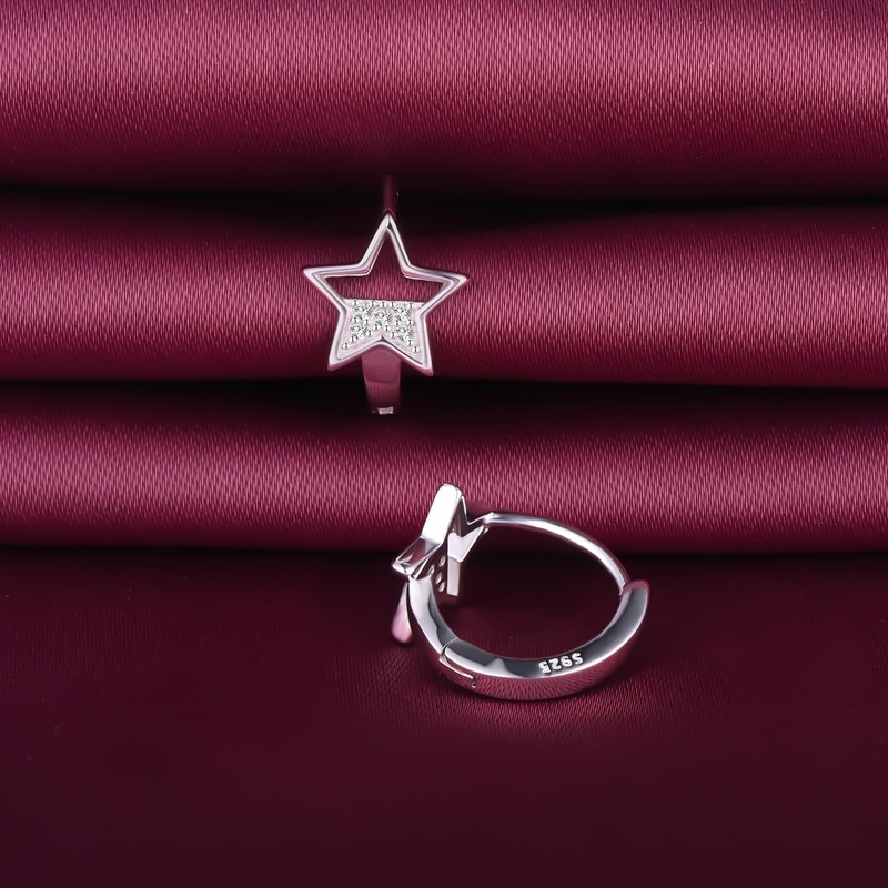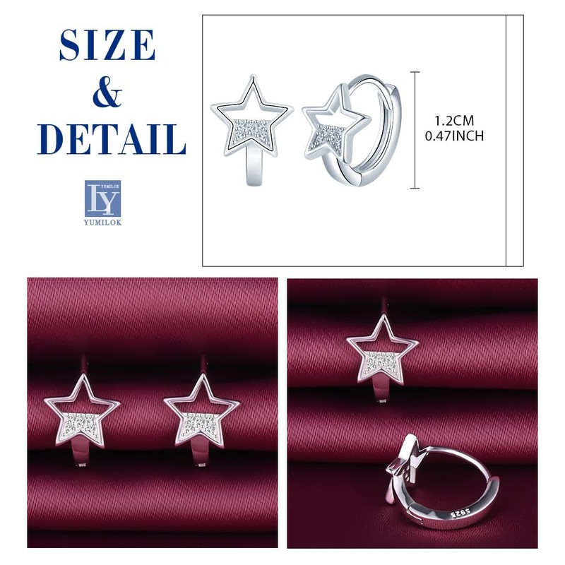 Yumilok Star Women's Earrings Small Cubic Zirconia Hoop Earrings Women's Stud Earrings Silver 925 for Women Girls Earrings, Sterling Silver