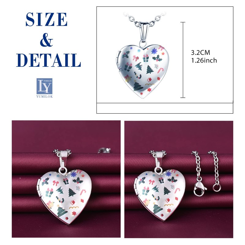 Yumilok Women's Necklace Moon Planet Heart Locket Photo Pendant Chain Amulet for Opening Pictures Photo Amulet Necklace for Women Girls, Stainless Steel, Rhinestone