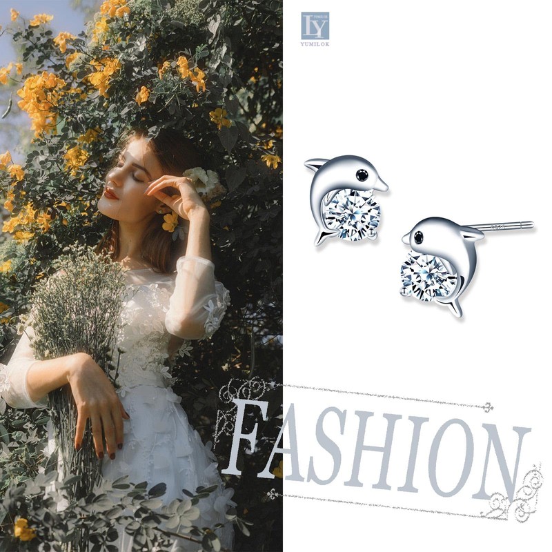 Yumilok Womens Girls 925 Sterling Silver Cute Dolphins with Zirconia Earrings Studs