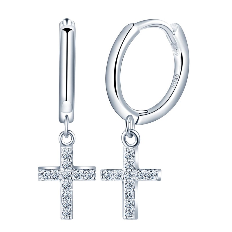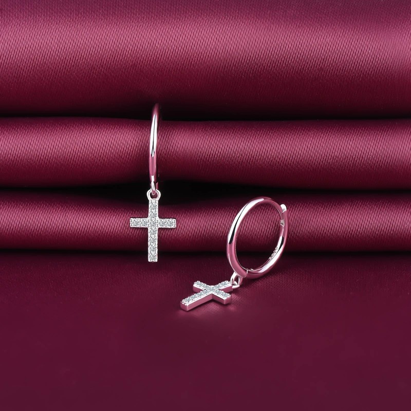 Yumilok Womens Mens 925 Sterling Silver Sparkling Zircon Hoops Earrings Diameter 0.9cm Creative Cross with Zirconia Silver Drop Earring Creole