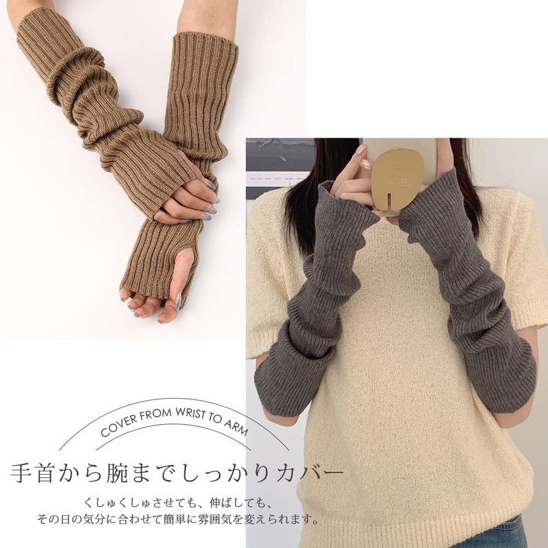 YUMISS Arm Cover, Women's Arm Warmer, Wrist to Arm Cover, Extreme Warm, Cold Protection, Finger Hanging, Smartphone Operated, Knit, 7 Colors, Cold Protection, Rough Hands, Fingerless, Cold Protection,