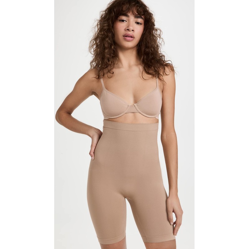 Yummie womens Seamless Solutions Waist Shaper Thigh Shapewear, Almond, Small-Medium US