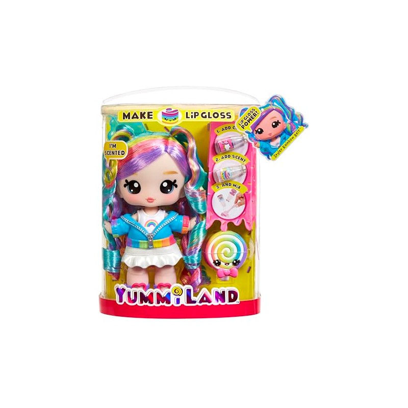- SCENTED CHARACTER DOLL. Like all Yummiland dolls, Skyler Rainbow Belt herself is scented with her sweet signature fragrance, matching that of her included lip gloss kit.