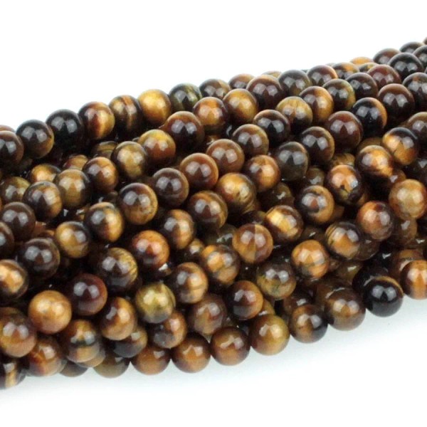 Yummy Treasures Dakota Stones Tiger Eye 4mm Round Gemstones. 8" Strand. TGE4RD-8