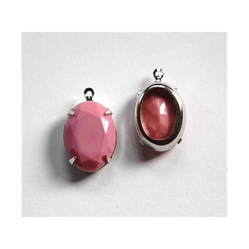 Yummy Treasures Vintage Opaque Pink Faceted Stone in 1 Loop Silver Setting 18X13mm (2) ovl004R