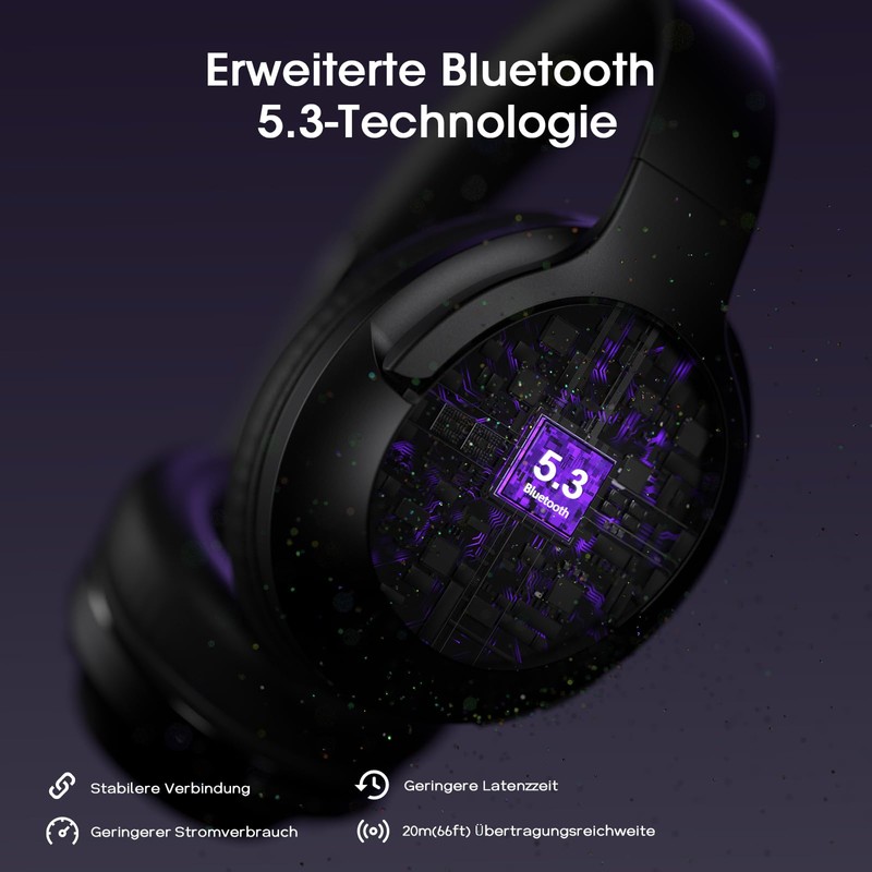 - Latest Bluetooth 5.3 wireless technology: these over-ear wired headphones are designed with the latest Bluetooth 5.3 technology, which offers you the ultimate wireless experience. These headphones offer a faster transmission speed, stronger connection stability, a longer Bluetooth range (up to 10 metres), lower latency and better audio output that offer you wonderful enjoyment. Built-in ENC microphone, supports ENC noise cancellation for calls and is compatible with smartphones so you can speak clearly even on noisy roads