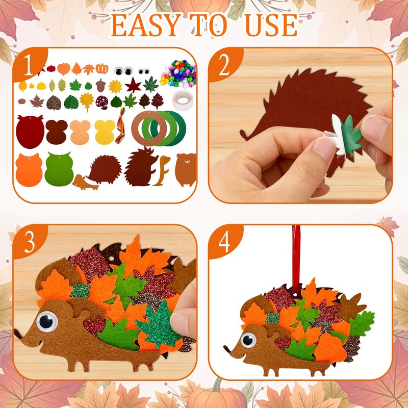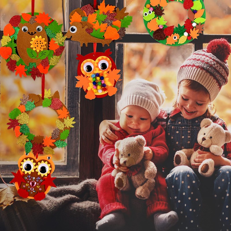YumSur Autumn Wreaths Craft Set, Autumn Crafts Children, Thanksgiving Crafts, Foam Rubber Craft Set Children Autumn, Hedgehog Craft Set for Children, Felt Craft Set, Foam Rubber Sticker Autumn,