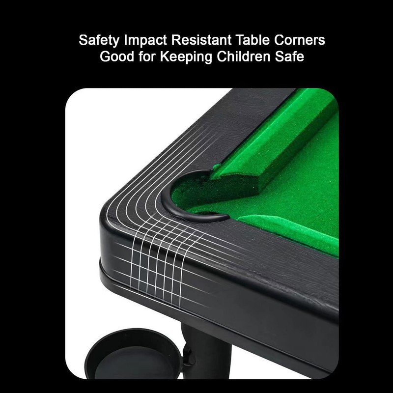 - 🎱 Sophisticated Design:The pool board is thicker and more resistant, with a solid stand.The billiard table top is covered with a selected non-slip plush cloth that increases the friction of the billiard balls. The safe, anti-bumping table corners ensure safety during play. There are also ball trays designed to restore the realism of playing billiards, allowing you to enjoy the game to the fullest.