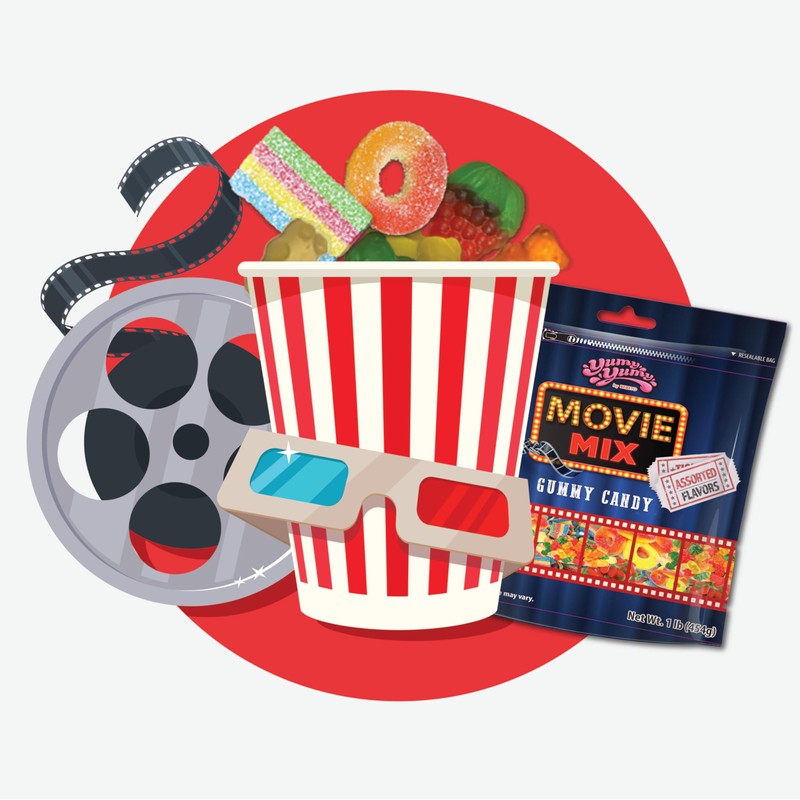 - A Pack of Freshness: With 14 oz of assorted gummy candy in a resealable bag, Yumy Yumy Movie Mix offers and ample supply of treats for any occasion, ensuring freshness and easy sharing.