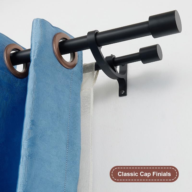 - DOUBLE CURTAIN RODS: Heavy duty 1-Inch diameter front rod and 5/8-Inch diameter back rod easily withstand light, medium and heavy blackout curtains without worrying about bending or sagging. Simple and modern cap finials on both ends, add elegant to your windows and decorate home perfectly.