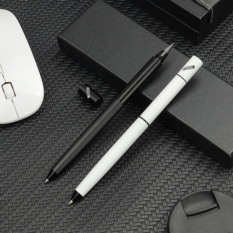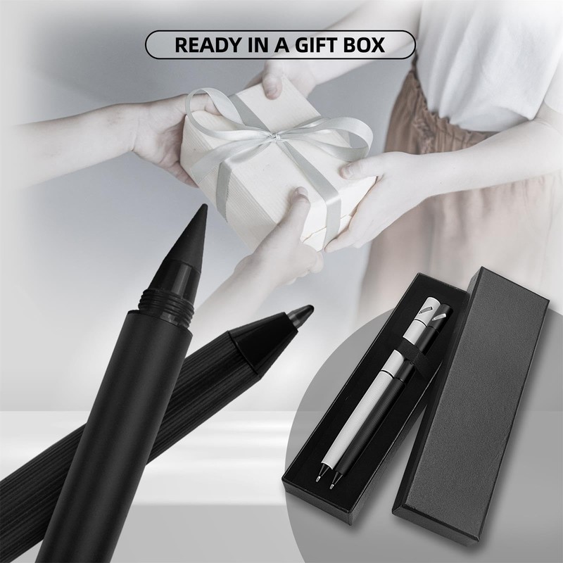 YUNCHUN 2PCS Ballpoint Pen + Pencil, Multi-Function Medium Point Boligrafos, Dual-Ended Black Ink Pen for School with Gift Box, Office Work Pens for Meeting Recording, Handwritten Drafts, White+Black