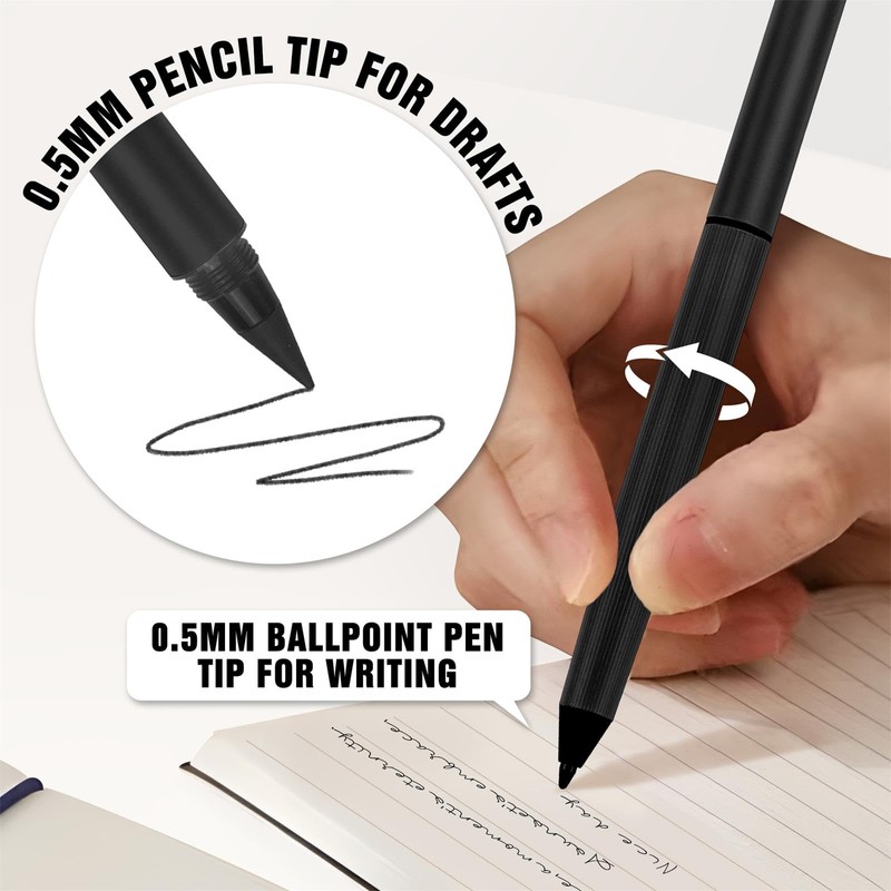 - 【Double Ended Design】This multi-functional pen has a ballpoint pen on one end and a pencil on the other. It meets daily writing needs and saves the hassle of carrying multiple pens