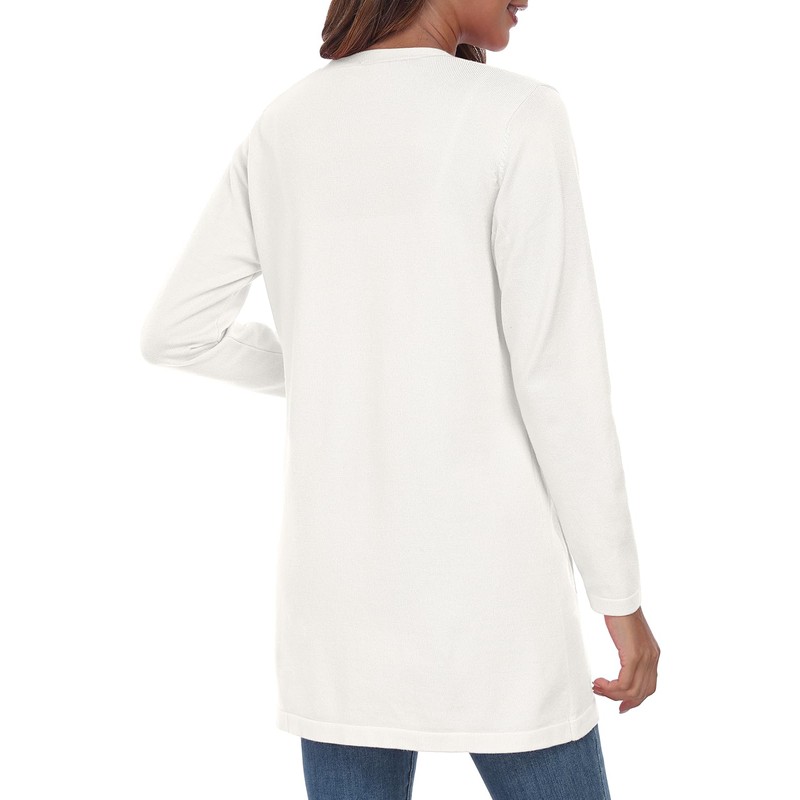 YUNDAI Women's Cardigans Open Front Lightweight Knitted Solid Color Long Cardigan for Women UK Long Sleeve Button Down Loose Sweater with Pockets White