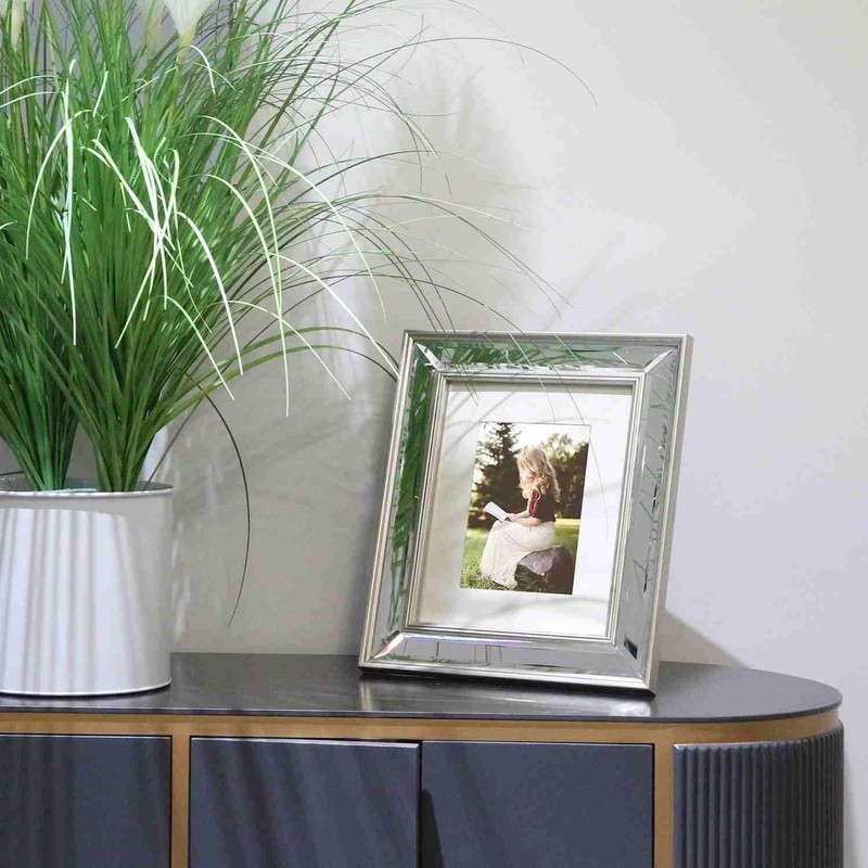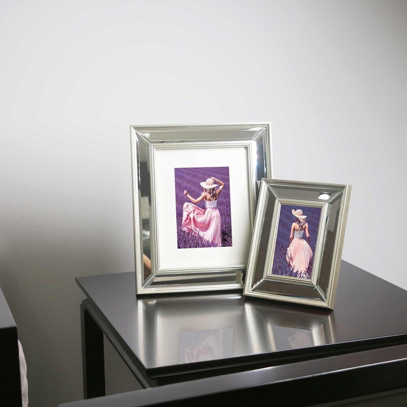 YUNDINGJI 8x10 Mat 5x7 Beveled Clear Mirror Silver Arc edge Photo Frame-Organic Glass Black Velvet Back Panel for Family,Wedding,Festival,Art,Wall,Tabletop,Decoration and Display.