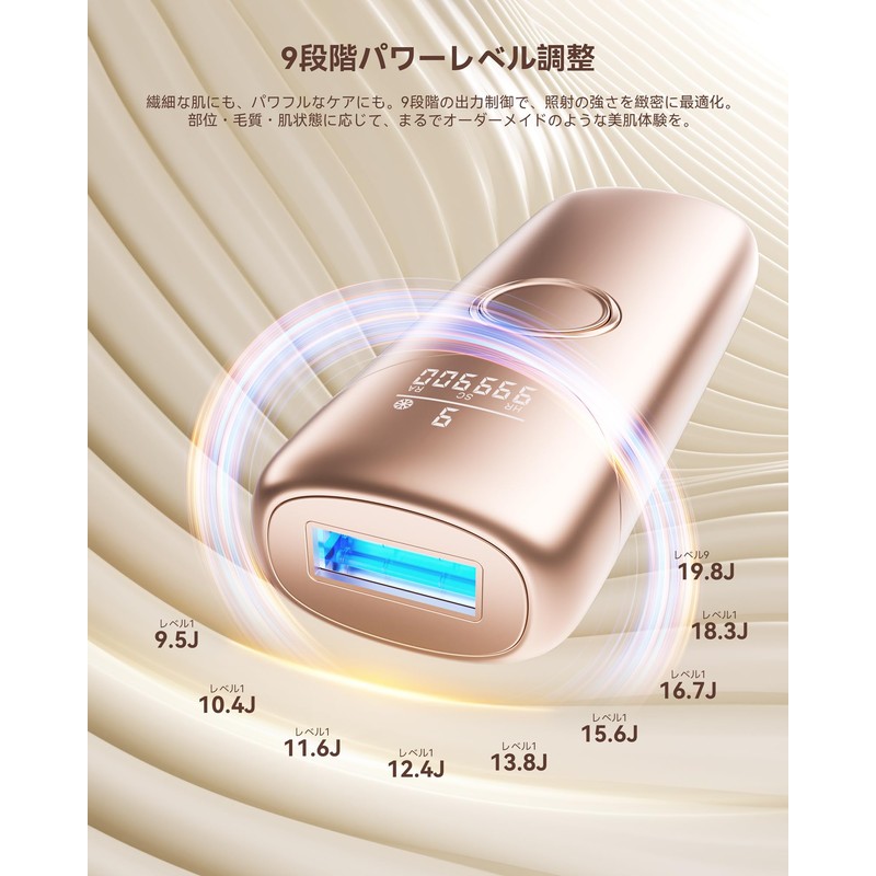 - Maximum Efficiency 19.8 J & 9 Levels of Illumination & Automatic / Manual Illumination Mode: Human hair is sleet depending on the part of the body. The YUNDOO Epilator has 9 levels of illumination so you can adjust the energy of a minimum of 7 to 19 J depending on your skin color and hair type. Increased effective hair care. When using for the first time, it is recommended that you adjust it from weak to gradually strong level. Manual mode illuminates one time and applies to small areas of hair loss such as face, lips, and fingers. Automatic mode is a fast continuous irradiation that is ideal for a wide range of hair loss, such as underarms, VIO, back, arms, and stomach. You can adjust it to your own hair removal needs