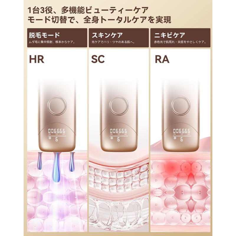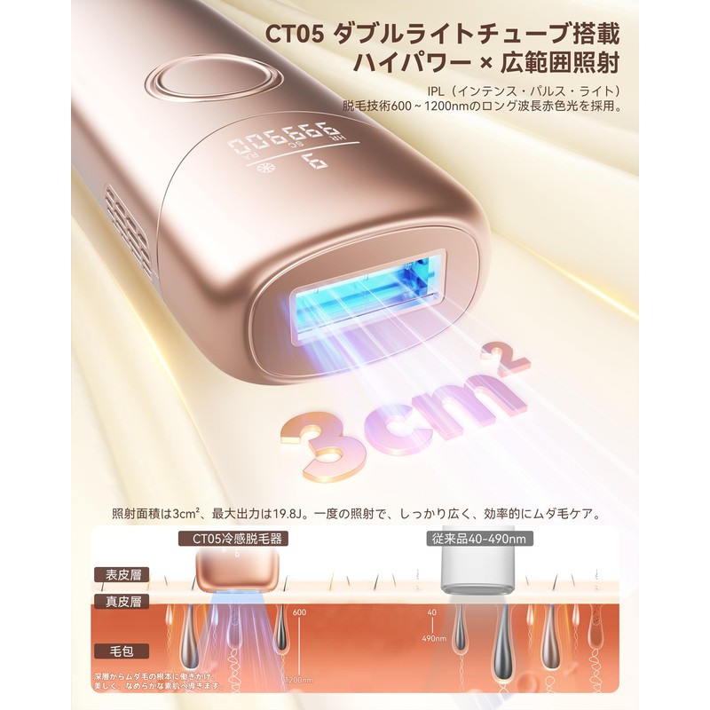 - 3-in-1 function & 990,000 times of irradiation & 3 modes: HR (for hair care), SC (for skin care), RA (beauty mode), and skin care as a light beauty container that combines skin care with skin care, and the body of the hair removal device is equipped with SR beautifying features, not only for household hair removers, but also as a light beauty container at home. 990,000 shots! You can share it with your family! The CT05 household hair remover can output 990,000 times of irradiation and can be shared with parents, children, friends, and couples. (*There may be individual differences depending on how many times it is used, output level, and hair quality. )