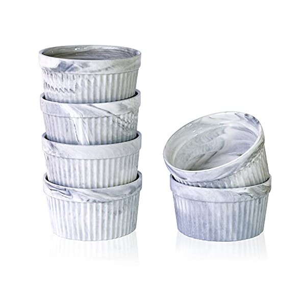 Yundu 4.5 Ounce Grey Marble Ceramic Ramekins - Perfect for Creme Brulee, Ramekins Oven Safe, Ramekins Bowls for Baking, Souffle Dish-Set of 6