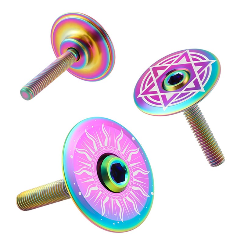 Yundxi Titanium Bicycle Headset Top Cap, 1 1/8 Inch Light Headset Cap Stem Cap Cover with Screw for MTB Road Mountain Bike (Constellations)