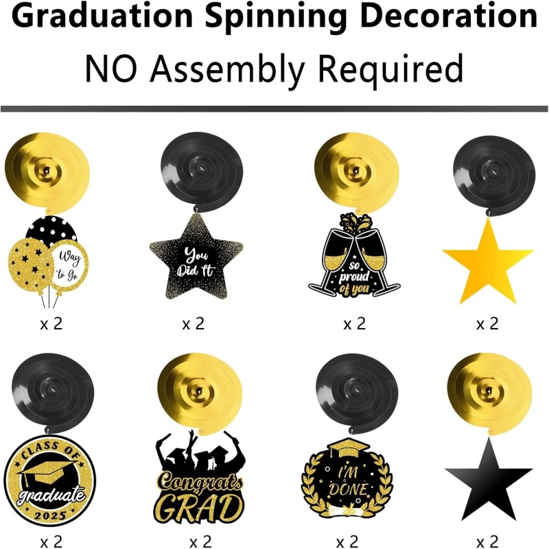 - PRE-ASSEMBLED EASY TO USE: The graduation party decorations are pre-assembled, NO DIY REQUIRED. Each swirl decoration comes with an attached plastic hook, set up and storage easily, saving you a lot of time. Just hang it anywhere you like, to enjoy your party.