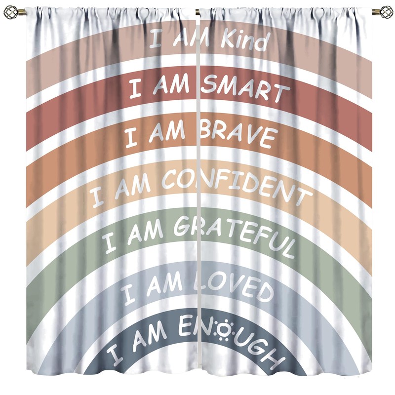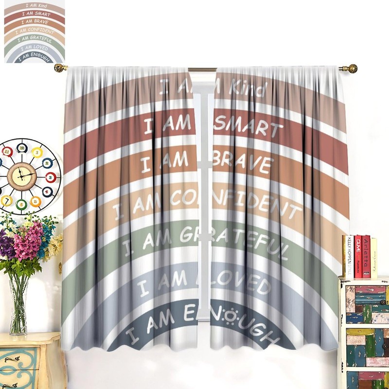 YungHo Boho Rainbow Curtain, Classroom Book Center Calming Corner Playroom Decor, I Am Kind Smart Brave Home Girls Room Blackout Window Treatment, Iridescence 21" W x 45" L x2【Decor】
