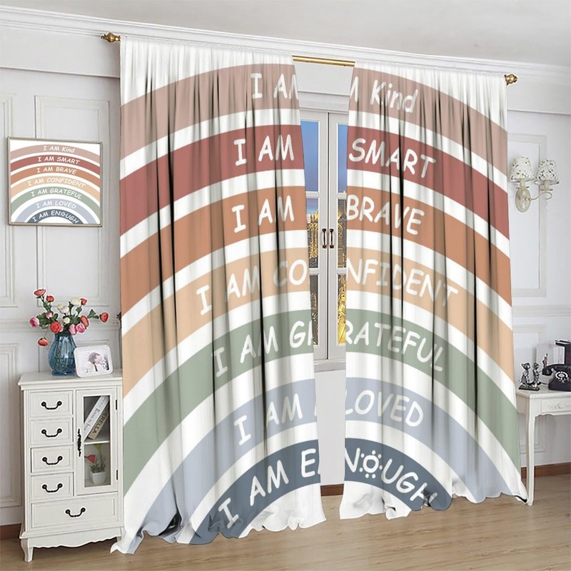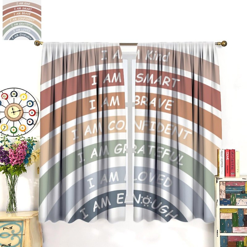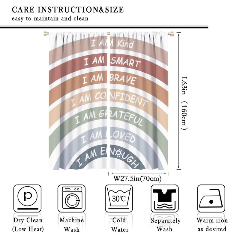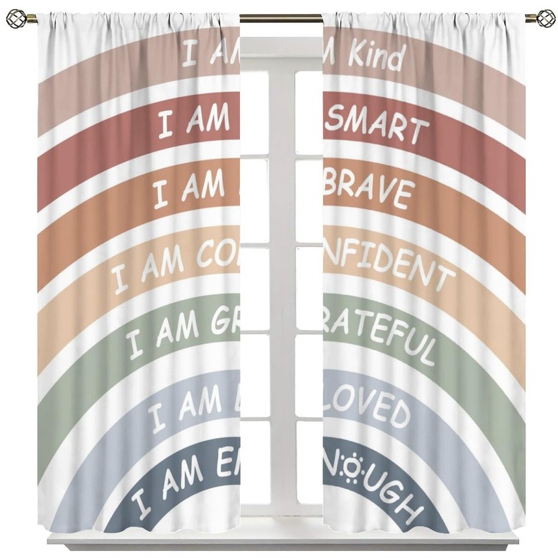 YungHo Boho Rainbow Curtain, Classroom Book Center Calming Corner Playroom Decor, I Am Kind Smart Brave Home Girls Room Blackout Window Treatment, Iridescence 21" W x 54" L x2【Blackout】