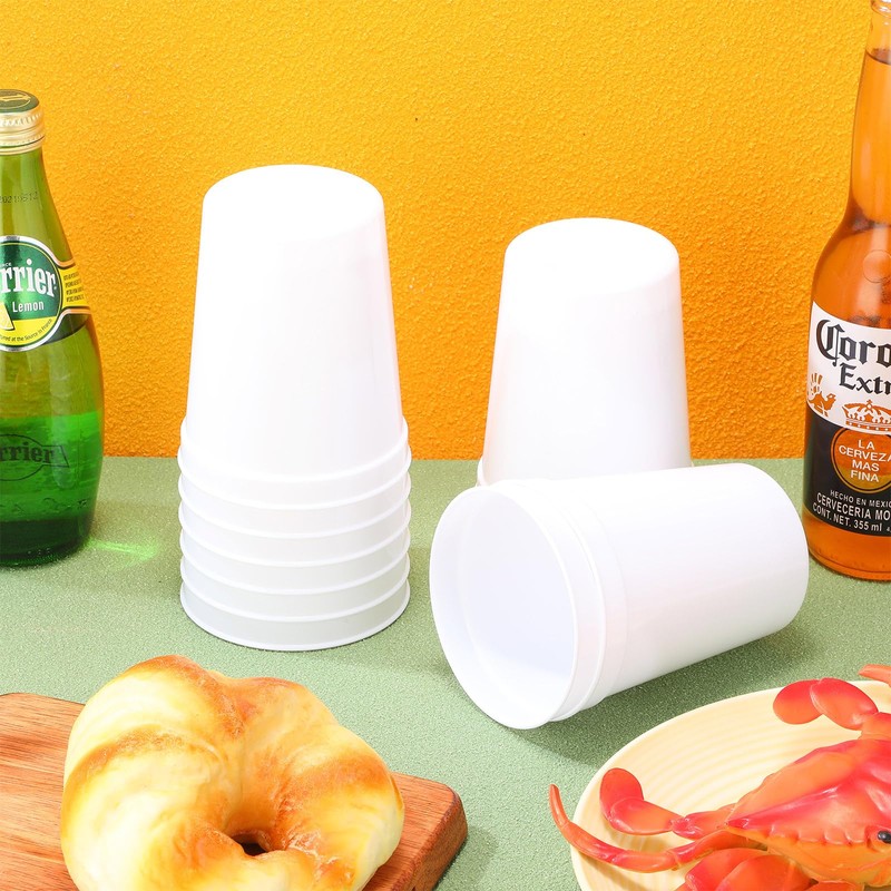 Yungyan 16oz Stadium Cups Reusable Plastic Cups Blank Drink Tumblers Stadium Cups Party Cups for Birthday Party, Events, Christmas, Shower, DIY Projects, 4.5 x 3.54 x 2.72 Inch(White,200 Pack)