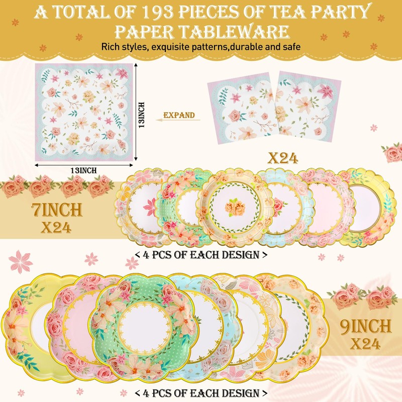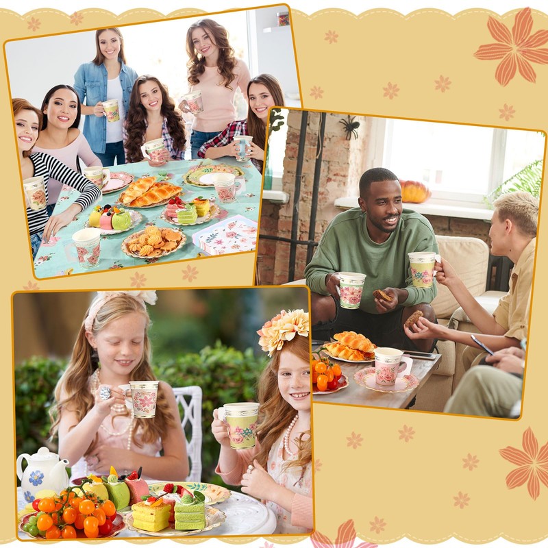 - Wide applications: these tea party plates, cups and napkins sets can decorate most occasions. Whether it is a birthday party, family gathering, floral themed party wedding, brunch and more, this versatile set can attract your guests