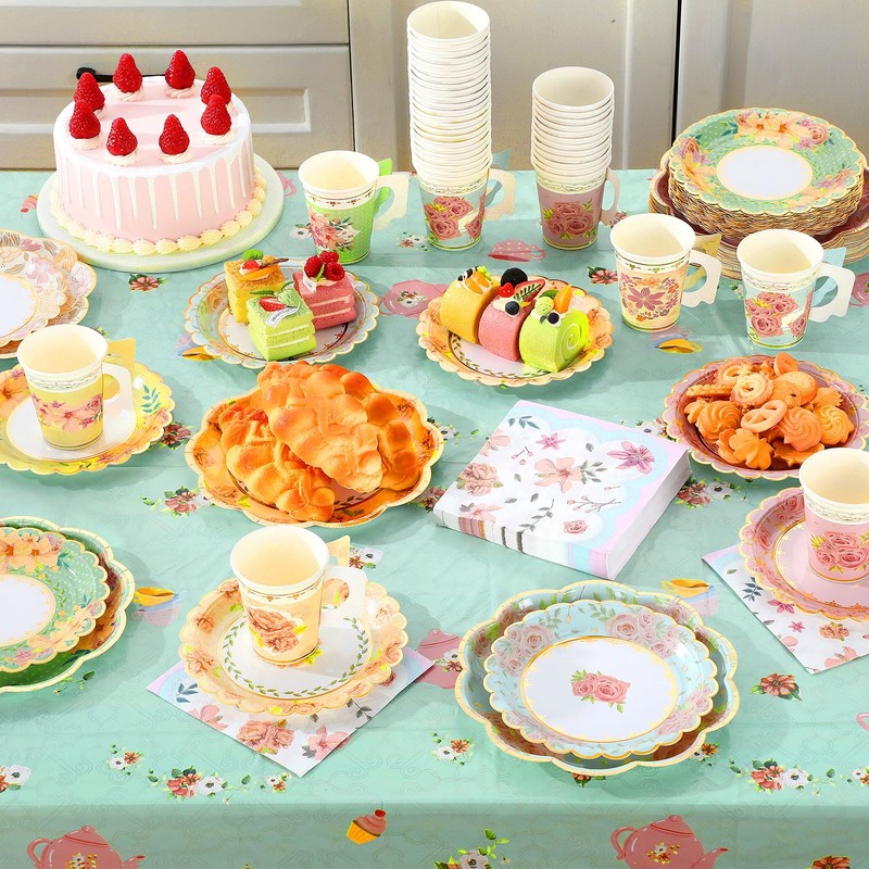- Quality material: our disposable floral tea party tableware supplies are made of thickened paper material. Although lightweight and flexible, the plates and tea party napkins are sturdy, make sure they stay in good condition throughout the event. The tea party tablecloth is made of waterproof and non-tear material, you can use it with confidence